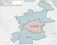 Area: Areas of the city that are covered by parking controls (generally around the city center where demand for parking is highest).